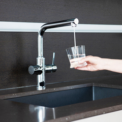 Tego typu baterie mają dwa niezależne obiegi – jeden do wody filtrowanej, drugi do zwykłej zimnej lub ciepłej – dzięki czemu z jednego kranu korzystasz na dwa sposoby.