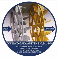 - Funkcja filtrująca osady kamienia – zmienia strukturę minerałów na sypki aragonit, który nie tworzy twardych złogów.